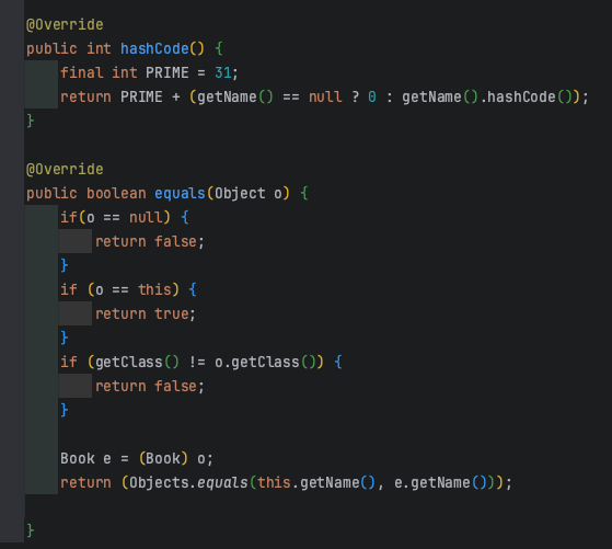 Book이라는 클래스에 equals 메소드와 hashCode 메소드를 오버라이딩 했기 때문에