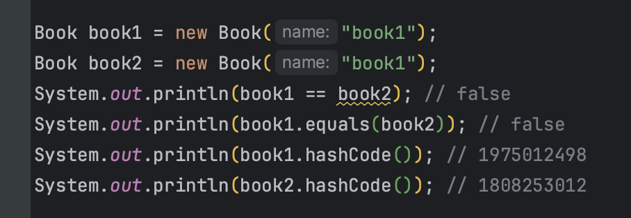 서로 다른 Book 객체는 주소값이 다르기에 hashCode가 다르다.